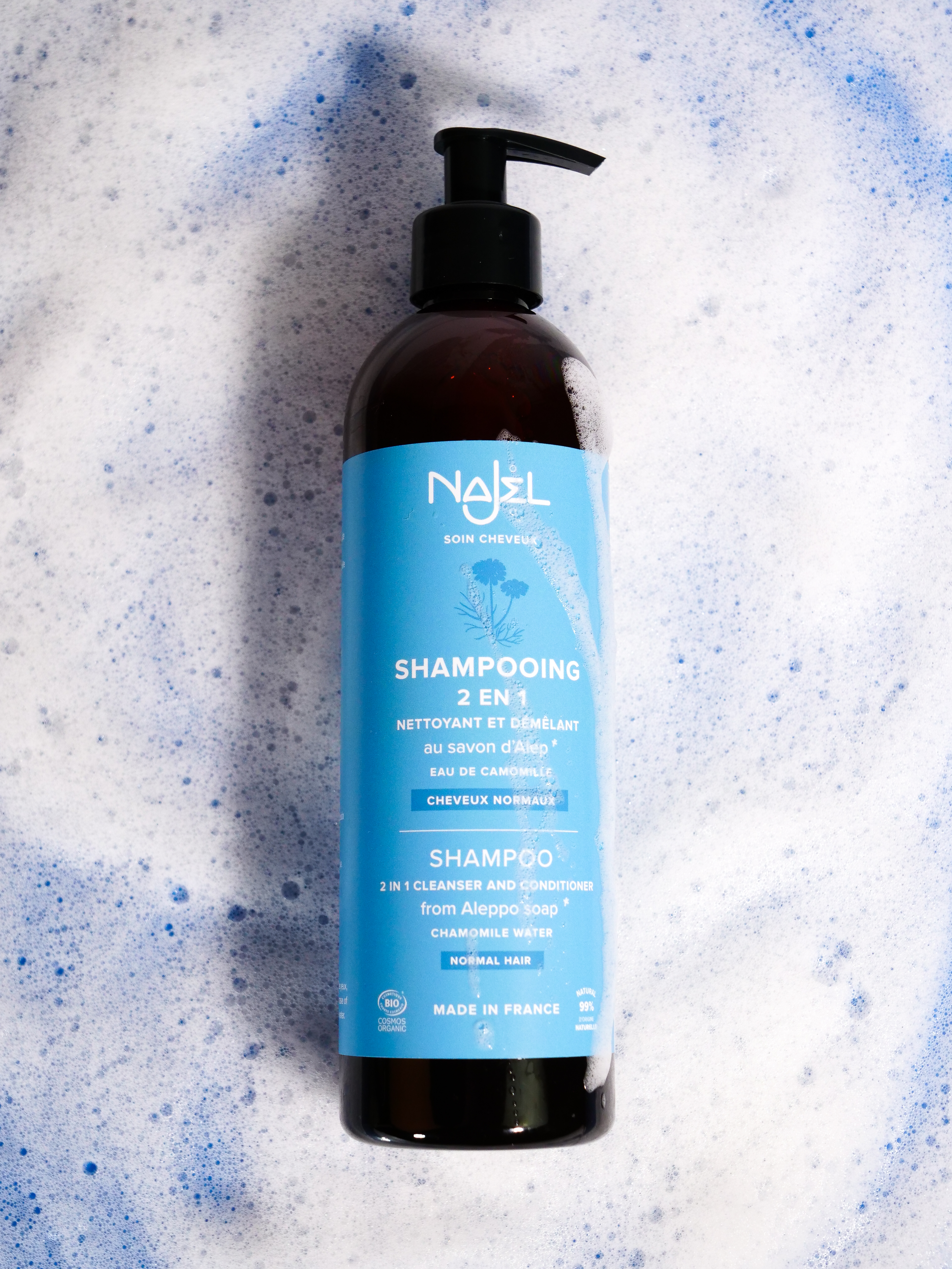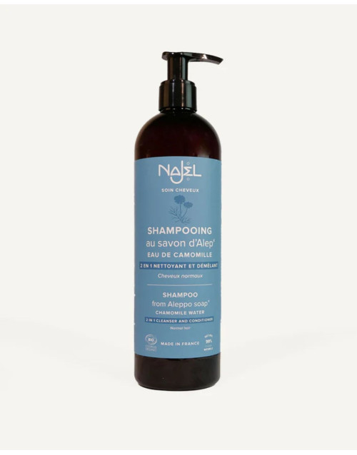 Discover in this shampoo, genuine Aleppo Soap in liquid form combined with the soothing and calming properties of organic Chamomile hydrolate.
