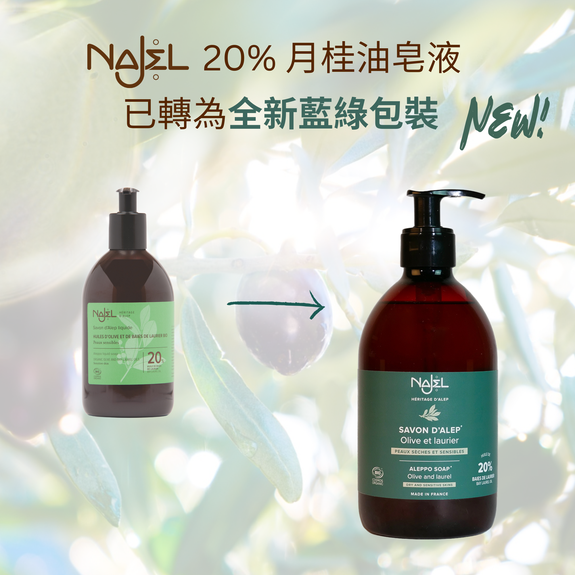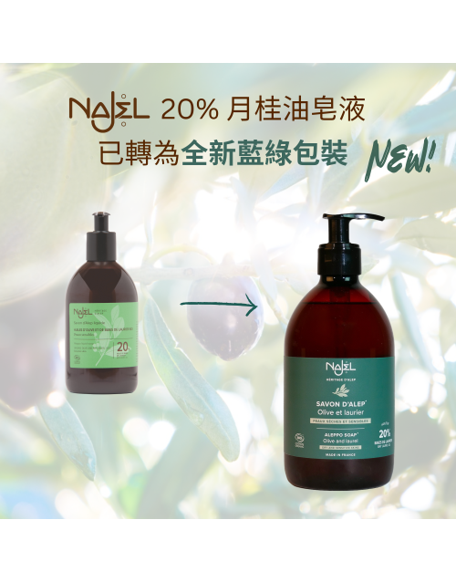 【20%月桂油 + 80% 橄欖油】法國 NAJEL 有機阿勒坡皂液 Aleppo Liquid Soap 20% BLO