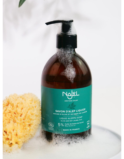 Discover real Aleppo soap in liquid form, perfect for dry, sensitive and irritated skin.