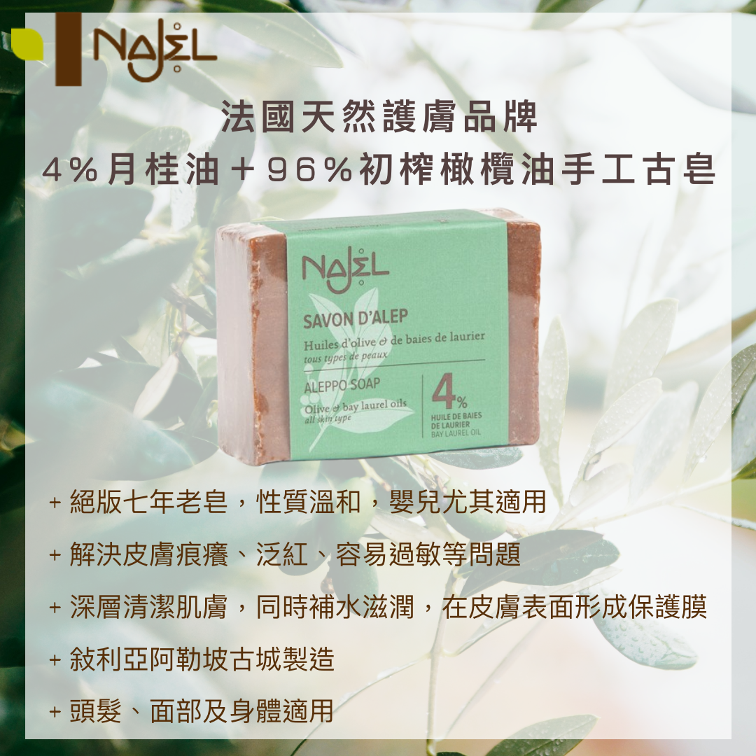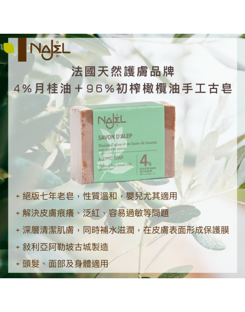 【11年絕版老皂】法國 NAJEL 4%月桂油 阿勒坡手工古皂 Aleppo Soap