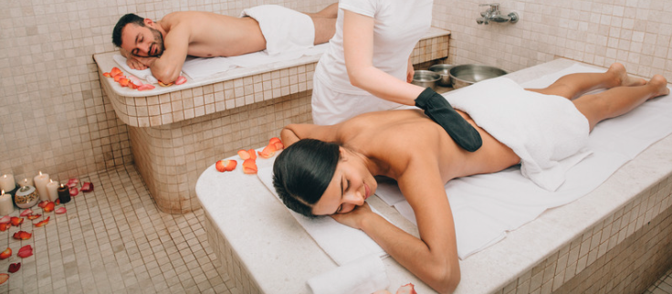 按摩師會將黑皂液塗滿全身,加以按摩,達致軟化肌膚的目的,