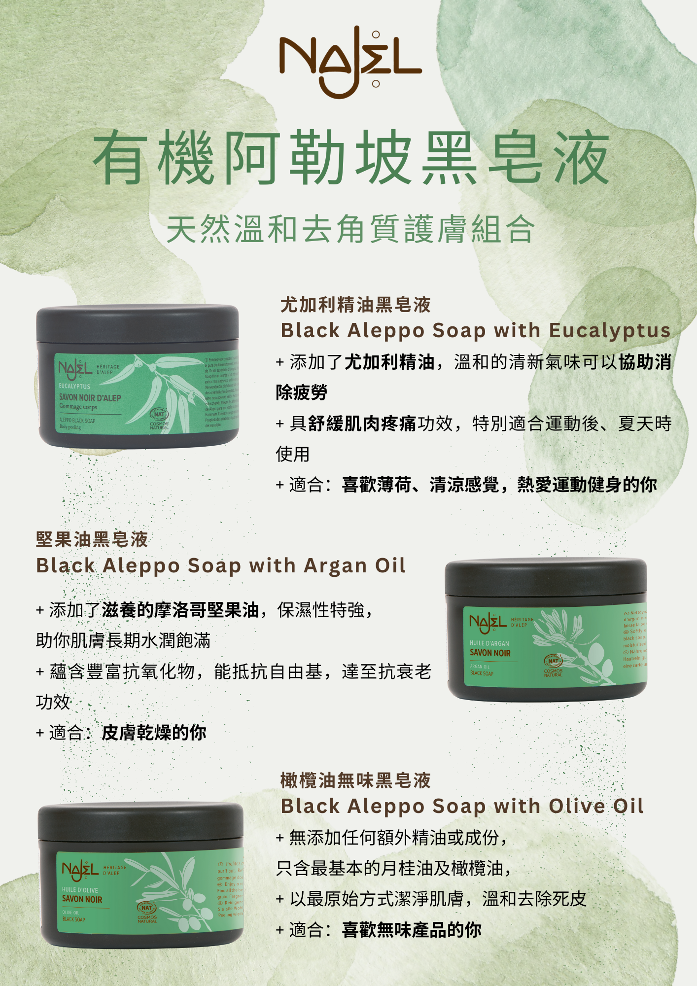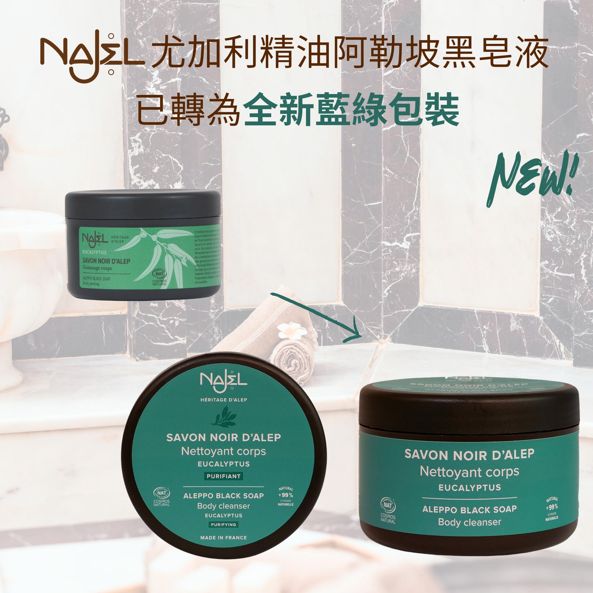 【身體去角質】法國 NAJEL 尤加利精油阿勒坡黑皂液 Black Aleppo Soap with Eucalyptus