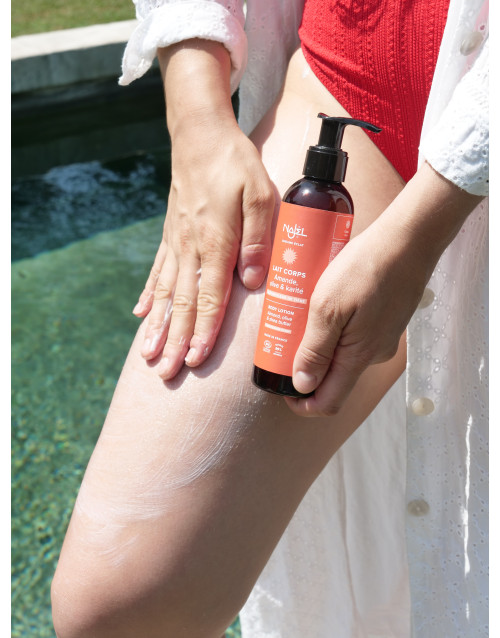 將3大護膚精華結合,每天使用 NAJEL 有機身體乳液能夠強化你的皮膚,同時深層滋養,用後更在你身上留下天然的梔子花淡香味。