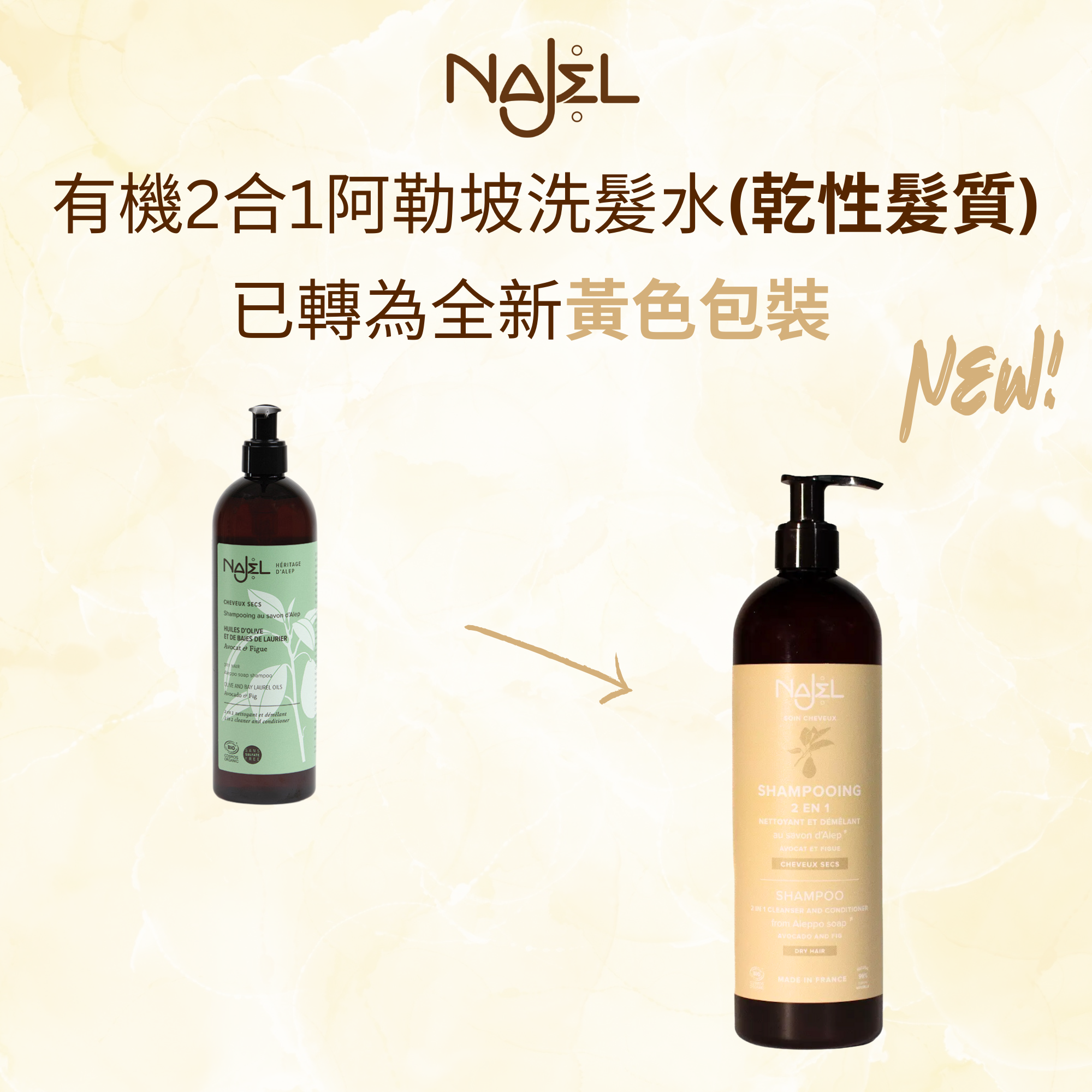【乾性髮質】法國 NAJEL 有機2合1阿勒坡洗髮水+護髮素 2 in 1 Aleppo Soap Shampoo for Dry Hair