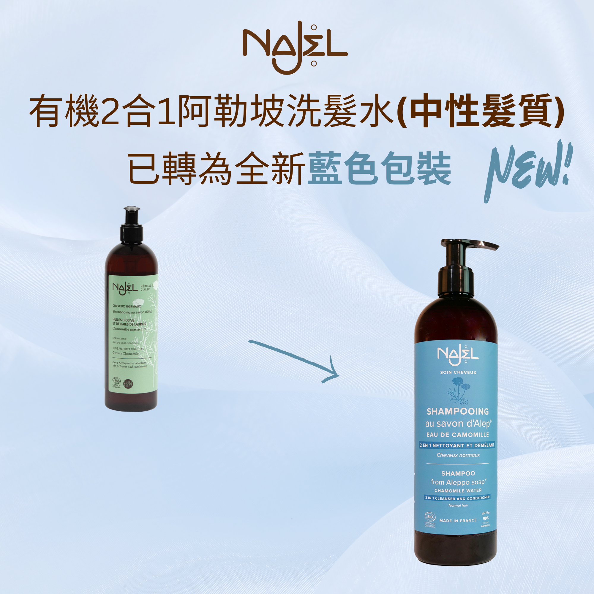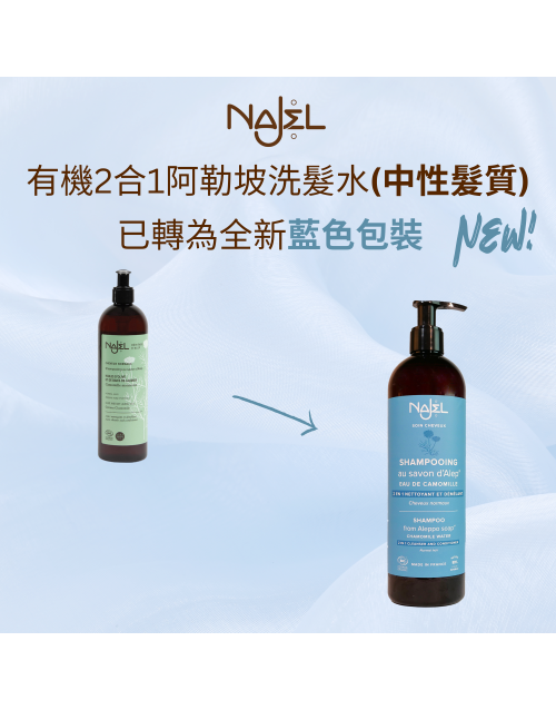 【中性髮質】法國 NAJEL 有機2合1阿勒坡洗髮水+護髮素 2 in 1 Aleppo Soap Shampoo for Normal Hair