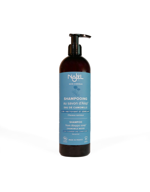 Discover in this shampoo, genuine Aleppo Soap in liquid form combined with the soothing and calming properties of organic Chamomile hydrolate.