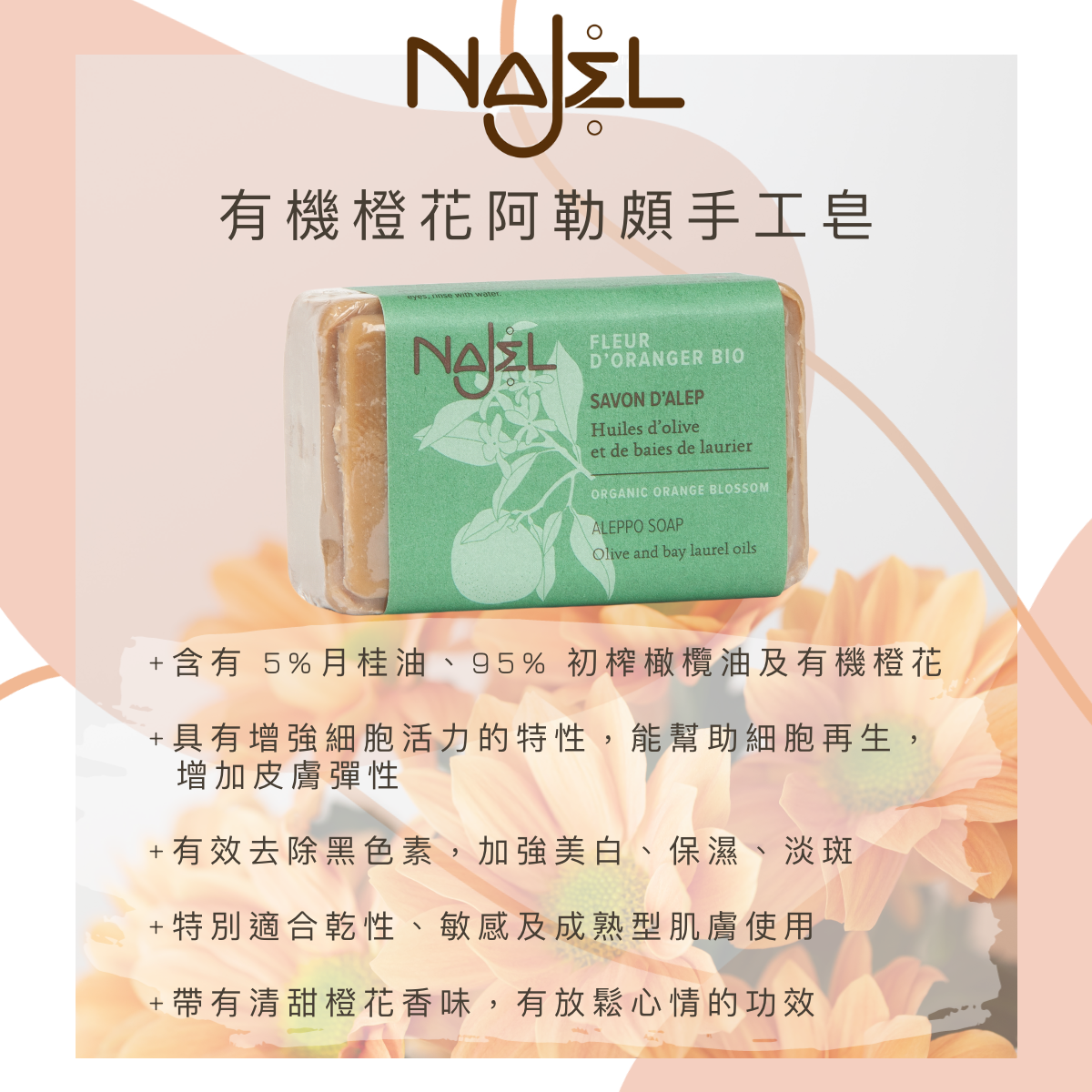 【缺貨 |10月中返貨】【美白保濕】法國 NAJEL 有機橙花 阿勒坡手工皂 Aleppo Soap With Organic Orange Blossom